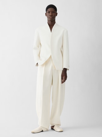 Collarless tailored jacket.