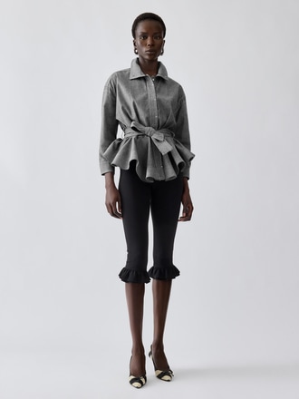 - Cropped fit with a belted waist