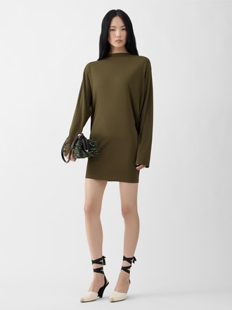 Abito con drappeggio sulla schiena.